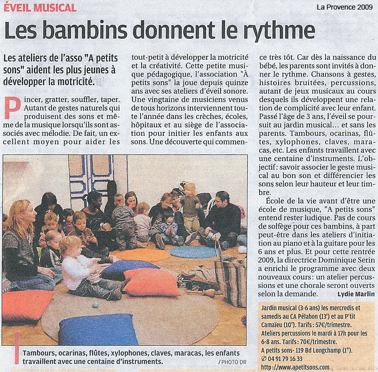 l'éveil musical à Marseille pour les enfants de 0 à 12 ans depuis 1994